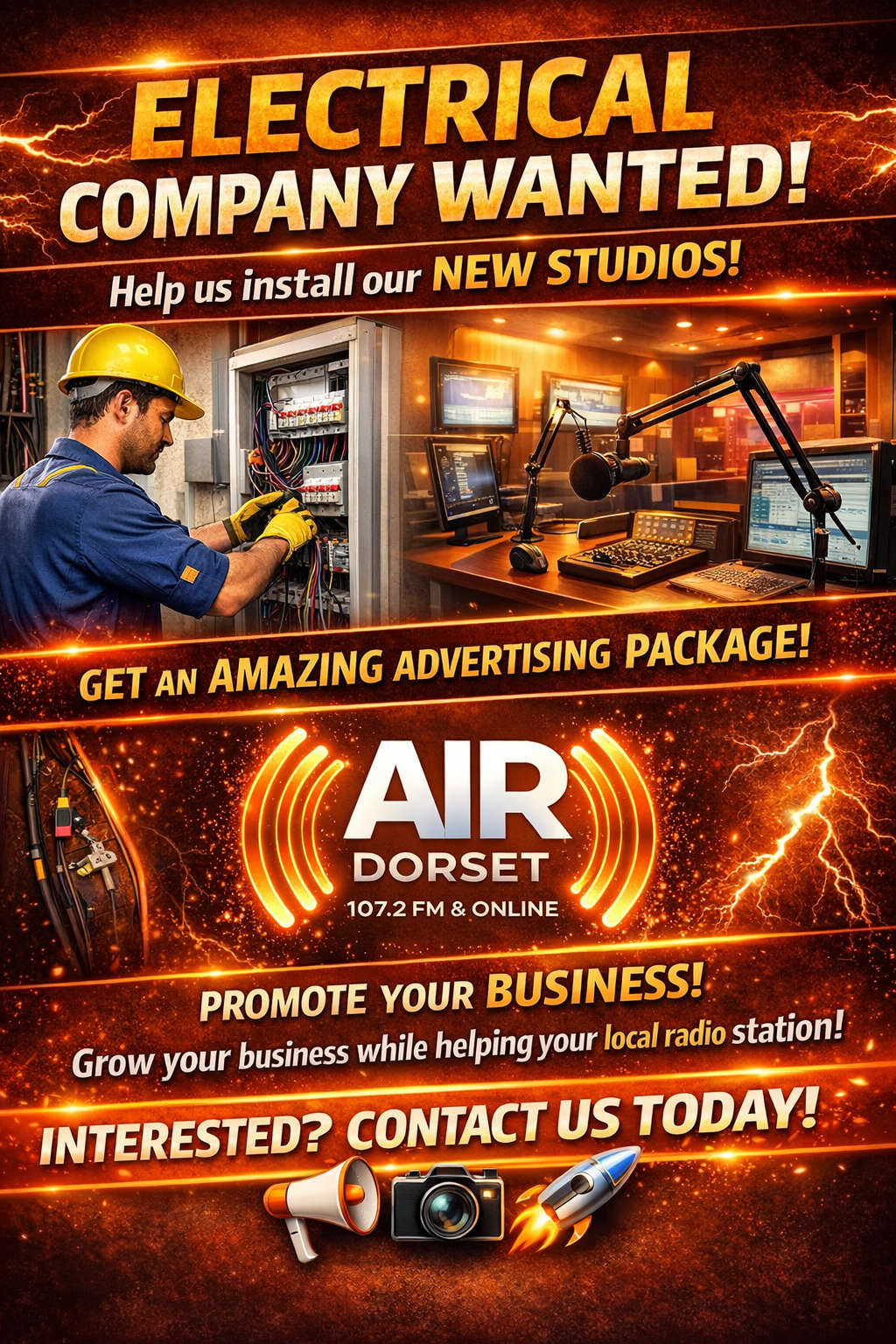 AIR 107.2 plays a vital role in the local area — promoting community events, supporting local charities, and providing a platform for local voices and businesses. By getting involved, the chosen electrical company won’t just gain advertising benefits — they’ll also have the satisfaction of knowing they have helped strengthen and support their local community radio station.